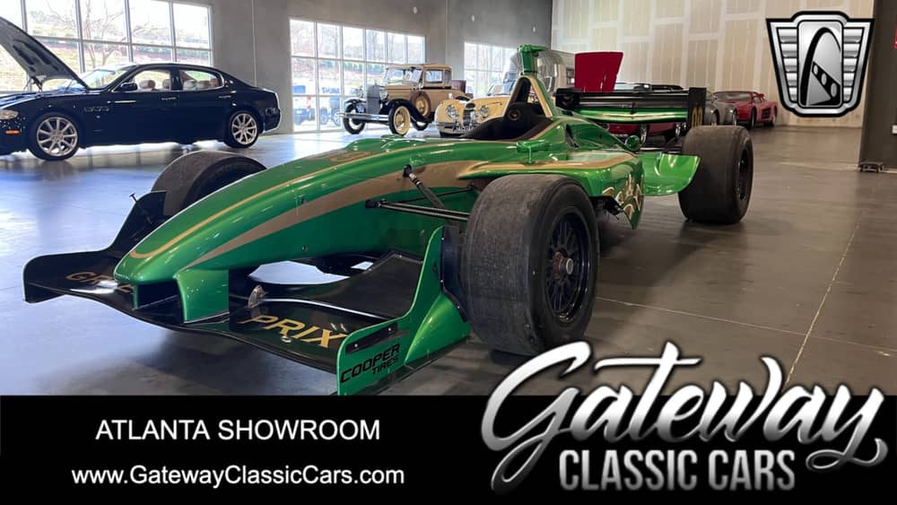 Gateway Classic Cars of Atlanta is proud to present this handsome green, black and gold Panoz DP01-005 Champ car Roller. This vehicle does not come with a title, Bill of Sale Only. The Panoz DP01 is an open-wheel car that was produced by lan Motorsport Technologies at Braselton, Georgia, United States. It was developed for use in the 2007 Champ Car World Series season, replacing the aging de facto-spec Lola chassis. The Panoz DP01 was developed to be safer, and less aero-dependent while racing closely with other cars than previously existing Champ Cars. The Panoz had numerous changes from the previous Lola car, including more downforce from the underbody. The new raised noses which were moved farther above the front wing and directed more air to the underbody aerodynamics. The raised nose also created a safer environment for the driver in the event of a collision.