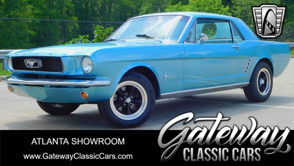 Gateway Classic Cars of Atlanta is proud the classic charm of this 1966 Ford Mustang. Painted in a blue exterior, this vehicle offers vintage style. The interior is also dressed in blue, providing a cohesive aesthetic.