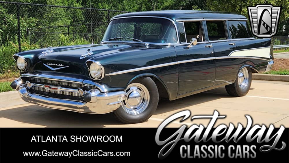 Gateway Classic Cars of Atlanta is proud to present this 1957 Chevrolet Wagon that radiates vintage charm with its metallic green exterior color. Paired with a beige tan interior, this vehicle offers both style and comfort for enthusiasts who appreciate the timeless elegance of a mid-century American automobile.