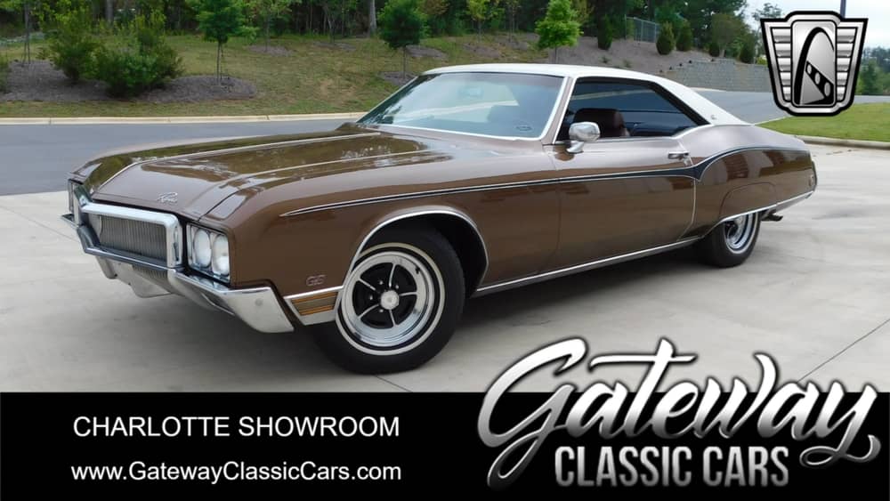 Step back in time and experience the luxury and power of the 1970 Buick Riviera GS. This classic American automobile is a stunning example of the era's design and engineering prowess, featuring a striking Harvest Gold exterior that utterly complements its rich brown vinyl interior.