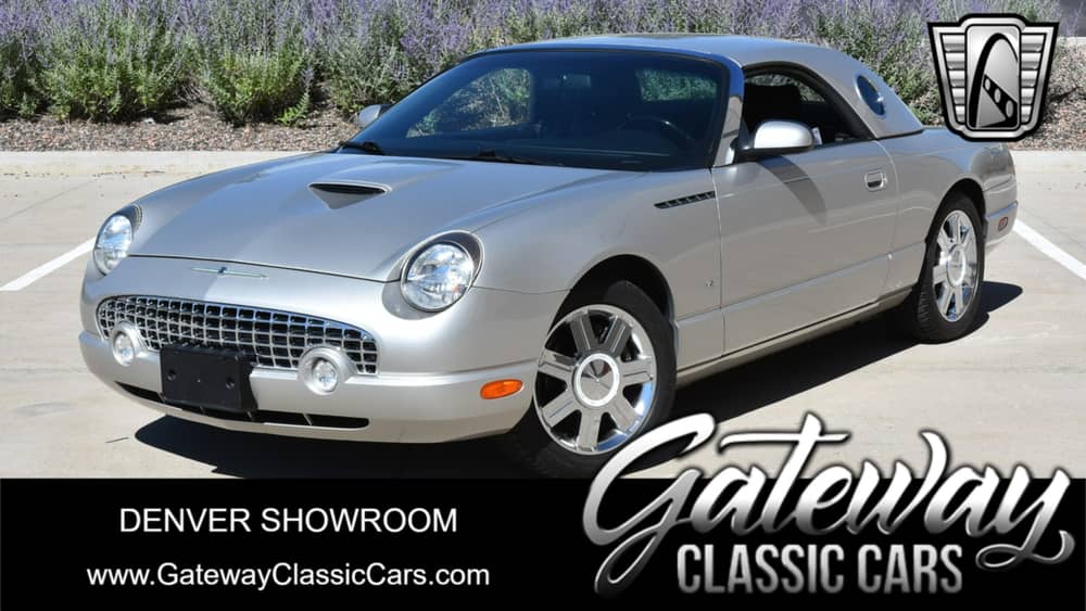 Gateway Classic Cars of Denver presents this 2004 Ford Thunderbird Hardtop Convertible, a classic beauty that combines style, performance, and comfort in one sleek package. This stunning vehicle comes in a sophisticated silver exterior color, complemented by a luxurious black leather interior, creating an elegant and timeless aesthetic.