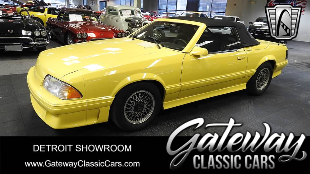 Gateway Classic Cars of Detroit is proud to present this 1987 Ford Mustang ASC McLaren. This 1987 Ford Mustang is Hot Yellow with Grey and Black leather interior. This Mustang is powered by the 5.0L V8 with an automatic transmission. This has 90979 miles on the odometer. The Mustang was contracted to be built by the American Sunroof Company (ASC), partnered up with the McLaren. This Mustang is equipped with air conditioning, AM FM with Cassette, tilt wheel, power windows and power locks, power seats, along with dual airbags, power brakes and power steering. To view this 1987 Ford Mustang in greater detail, including HD pictures and video, find us online at www.GatewayClassicCars.com. For more information, Detroit showroom, or call (313)-982-3100 for more information. You can always email us as well at