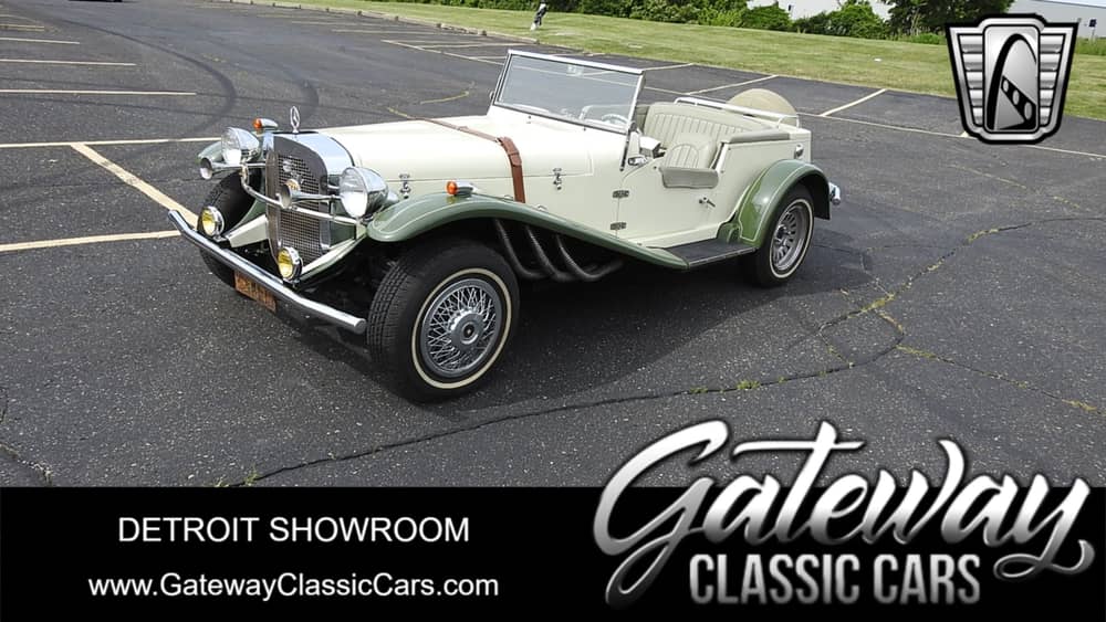 Gateway Classic Cars of Detroit is proud to present this 1972 Mercedes-Benz Gazelle replica. The Mercedes-Benz SSK (W06) is a roadster built by German Mercedes-Benz between 1928 and 1932. The name is an abbreviation of Super Sport Kurz, German for "Super Sport Short", as it was a short wheelbase development of the Mercedes-Benz Model S. The SSK's extreme performance and numerous competitive successes made it one of the most highly regarded sports cars of its era. Fewer than 40 SSKs were built during its production span, of which about half were sold as Rennwagen, (racing cars). What does one do when they want to enjoy an extremely scarce sports car without the fear of selling one's soul to the devil and emptying one's retirement fund too? Simple, find a replica! You can enjoy driving it without fear of ruining a piece of history all the while keeping gobs of greenbacks in your wallet. It offers neo-classic styling that most folks will at least admire as it drives by, even if they don't know quite what it is. Finished in a cream and green exterior, and a cream/gray interior, this has a timeless look. The body of this Gazelle sits on a Ford Pinto body. Equipped with a 2.0 4 cylinder engine backed with a 4 speed manual transmission and 3,540 miles on the dash. If you are looking to hit a car show/event in a fun, topless little car you don't see often, do it in class with this Mercedes-Benz on a pinto body, you'll be sure to be the only one with one of these!