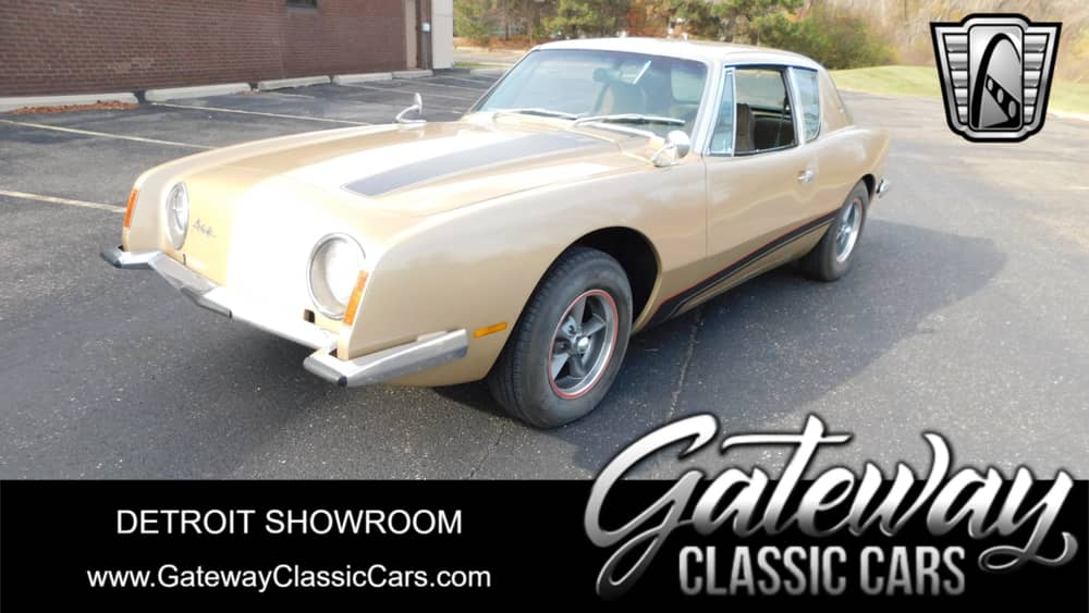 Gateway classic cars of Detroit is proud to present this 1972 Avanti II. You have to give it to a car that has been marketed through a succession of five different ownership arrangements from 1965 all the way through 2006. The car has managed to survive and using everything from left over Studebaker parts, to Ford and GM chassis and drivetrains. Studebaker made 4,647 Avanti's and over the next 41 years there were never more than 289 Avanti's produced in a single year. So the rare factor is certainly there. This 72 shows good in it's metallic gold exterior paint and you'll be thrown right back into 1972 once you take a seat inside the brown and green Leather and cloth 2 tone interior. Under the hood you will find a small block Chevy 400 producing 300hp and mated to an automatic transmission. With just a little over 86k on the dash, that averages out to 1,720 miles a year, you'll be comfortable knowing this car was enjoyed, but not too much!