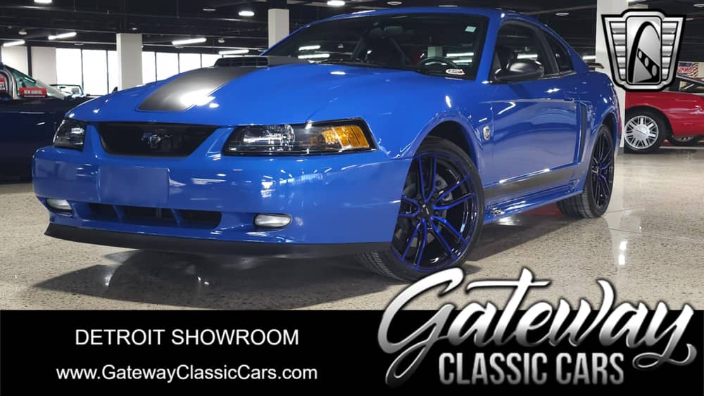 Gateway Classic Cars of Detroit is excited to present this 2004 Ford Mustang Mach 1! With a mere 4750 miles, verified by an accident-free Carfax report, this is a rare opportunity to own an extremely well-preserved piece of automotive history. This Mach 1 is dressed in a captivating blue hue, accentuated by a sophisticated black leather interior that exudes both style and comfort. Beyond its low-mileage condition, this Mustang underwent a recent 5-year rated, $1,800 ceramic coating. Powered by a robust 4.6L V8 engine mated to a 5-speed manual transmission, it promises a driving experience that combines power with precision.