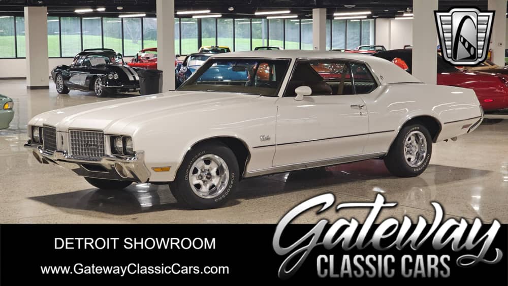 Gateway Classic Cars of Detroit is excited to present this 1972 Oldsmobile Cutlass! Dressed in a white exterior, complemented by a white vinyl top and a rich brown vinyl interior, this Cutlass exudes a timeless charm. Under the hood, the reliable 350 CID V8 Rocket engine delivers robust performance, paired seamlessly with a column-shift automatic transmission. This particular Cutlass stands out for its clean condition, making it a rare find in today's market. For enthusiasts and collectors alike, this Cutlass represents a golden opportunity to own a piece of automotive history. Don't miss the chance to experience the classic allure of this 1972 Oldsmobile!