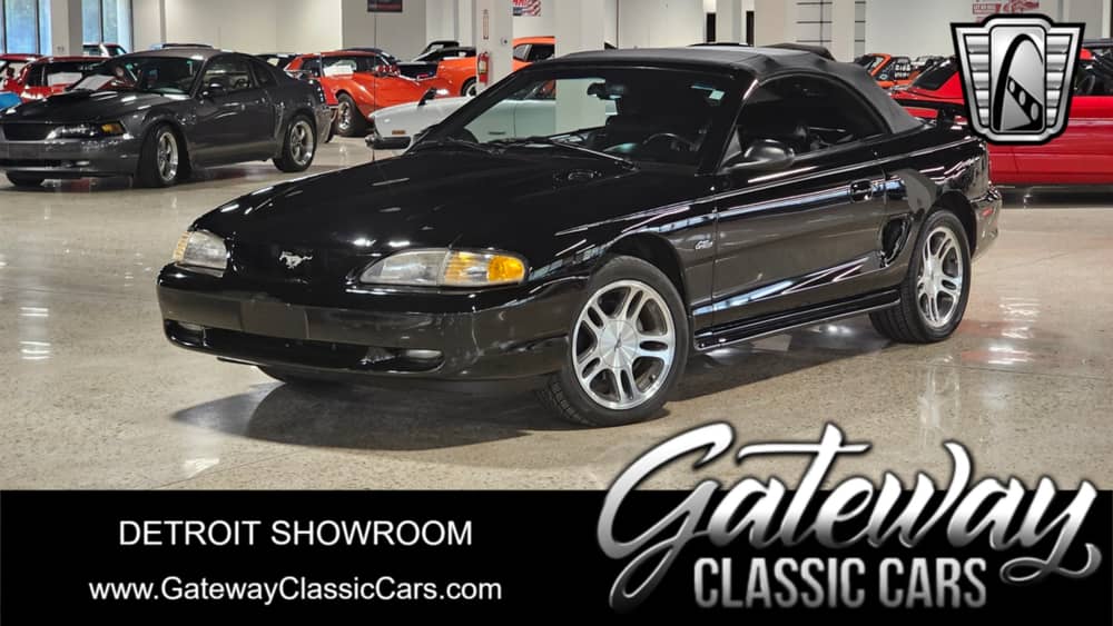 Gateway Classic Cars of Detroit is excited to present this 1997 Ford Mustang GT Convertible! This Mustang is a clean, well-loved example of a true American classic. It's powered by the strong and reliable 4.6L V8, and is tastefully modified in a way that makes it sound and drive even better without going over the top. The convertible top is great for those sunny cruises, and the car has a solid ownership history- clearly cared for over the years. Whether you're into weekend drives, cars and coffee, or just want a fun V8 cruiser, this Mustang's a great choice!