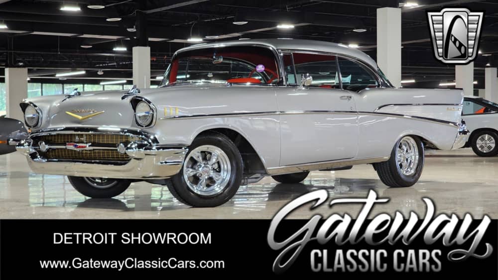 Gateway Classic Cars of Detroit is excited to present this 1957 Chevrolet Bel Air! This Chevy has undergone a full restoration, finished in stunning silver with a vibrant red and black interior. It features a ZZ4 V8 crate engine and a Turbo 350 Automatic transmission. This Bel Air has earned accolades at prestigious shows, including a second-place finish at the Detroit Autorama in its class and recognition at the St. Ignace Concours d 'Elegance. Every detail, from the dash to the chrome trim, reflects a passion for craftsmanship. This Bel Air isn't just a car- it's a showpiece of American automotive heritage!