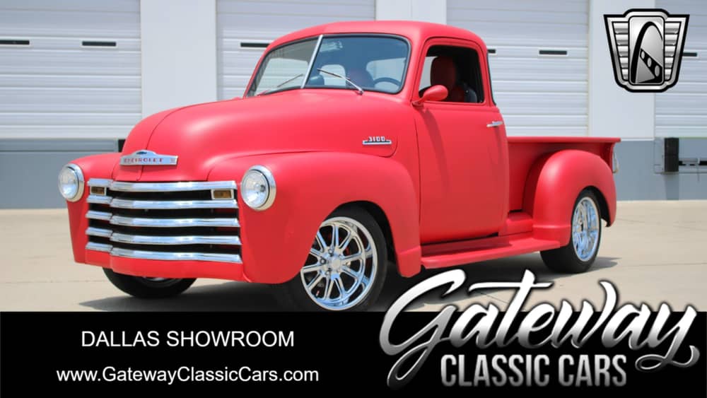 This 1953 Chevrolet 3100 is listed by our Dallas Showroom and can be viewed in greater detail including 100+ HD pictures and an HD video at www.GatewayClassicCars.com. For additional information, please call our knowledgeable staff at (817)-310-9400 or email us at . Our Dallas Showroom is located at 1250 Mustang Drive Suite 500, Grapevine, TX 76051. Hours: Monday through Saturday, 9 AM to 5 PM CST, please reach out to set an appointment.
