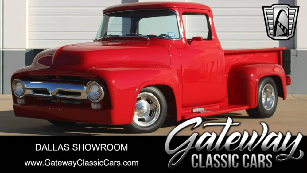This 1956 Ford F100 is listed by our Dallas Showroom and can be viewed in greater detail including 100+ HD pictures and an HD video at www.GatewayClassicCars.com. For additional information, please call our knowledgeable staff at (817)-310-9400. Our Dallas Showroom is located at 1250 Mustang Drive Suite 500, Grapevine, TX 76051. Hours: Monday through Saturday, 9 AM to 5 PM CST, please reach out to set an appointment.