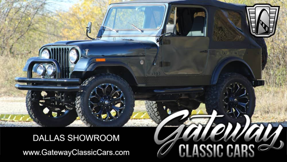 This 1977 Jeep CJ7 is listed by our Dallas Showroom and can be viewed in greater detail including 100+ HD pictures and an HD video at www.GatewayClassicCars.com. For additional information, please call our knowledgeable staff at (817)-310-9400 or email us at Dallas@ GatewayClassicCars.com. Our Dallas Showroom is located at 1250 Mustang Drive Suite 500, Grapevine, TX 76051. Hours: Monday through Saturday, 9 AM to 5 PM CST, please reach out to set an appointment.
