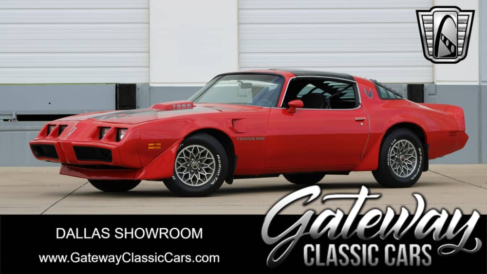 This 1979 Pontiac Firebird Trans Am is listed by our Dallas Showroom and can be viewed in greater detail including 100+ HD pictures and an HD video at www.GatewayClassicCars.com. For additional information, please call our knowledgeable staff at (817)-310-9400 or email us at Dallas@ GatewayClassicCars.com. Our Dallas Showroom is located at 1250 Mustang Drive Suite 500, Grapevine, TX 76051. Hours: Monday through Saturday, 9 AM to 5 PM CST, please reach out to set an appointment.