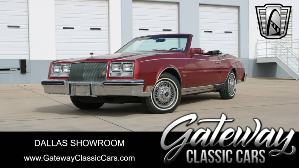 This 1984 Buick Riviera is listed by our Dallas Showroom and can be viewed in greater detail including 100+ HD pictures and an HD video at www.GatewayClassicCars.com. For additional information, please call our knowledgeable staff at (817)-310-9400 or email us at Dallas@ GatewayClassicCars.com. Our Dallas Showroom is located at 1250 Mustang Drive Suite 500, Grapevine, TX 76051. Hours: Monday through Saturday, 9 AM to 5 PM EST, please reach out to set an appointment.