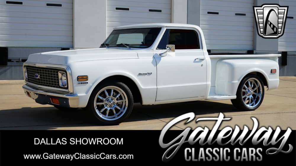 This 1972 Chevrolet C10 Stepside Pickup is listed by our Dallas Showroom and can be viewed in greater detail including 100+ HD pictures and an HD video at www.GatewayClassicCars.com. For additional information, please call our knowledgeable staff at (817)-310-9400. Our Dallas Showroom is located at 1250 Mustang Drive Suite 500, Grapevine, TX 76051. Hours: Monday through Saturday, 9 AM to 5 PM CST, please reach out to set an appointment.