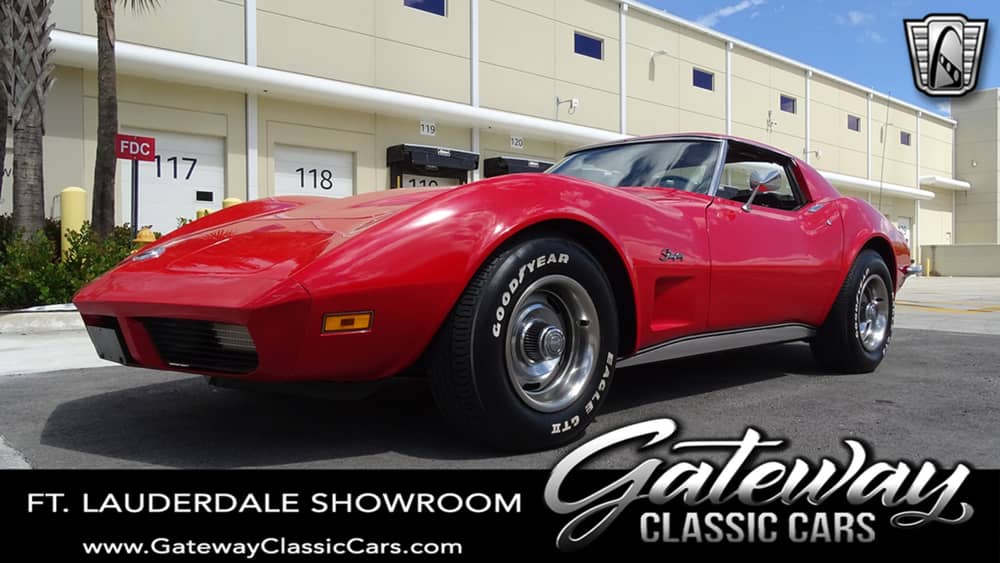 C3 Corvette fans! Gateway Classic Cars of Fort Lauderdale is excited to resent this very sharp 1973 Corvette Stingray, in red on black. 1973 was the VERY LAST of the chrome bumper Corvettes folks and this is a nice one.