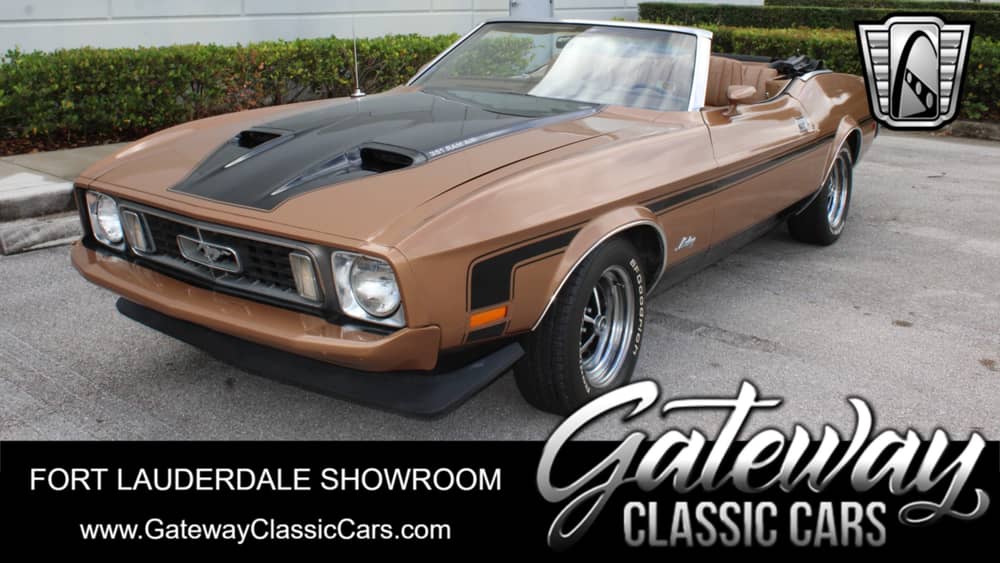 Gateway Classic Cars Fort Lauderdale is proud to present this 1973 Ford Mustang, featuring a striking brown exterior that captures the essence of its era. This Mustang is powered by a robust 351 CI V8 engine, paired seamlessly with a 3-speed automatic transmission, offering a driving experience that is both powerful and smooth. The combination of this engine and transmission ensures that every journey is as thrilling as it is comfortable.