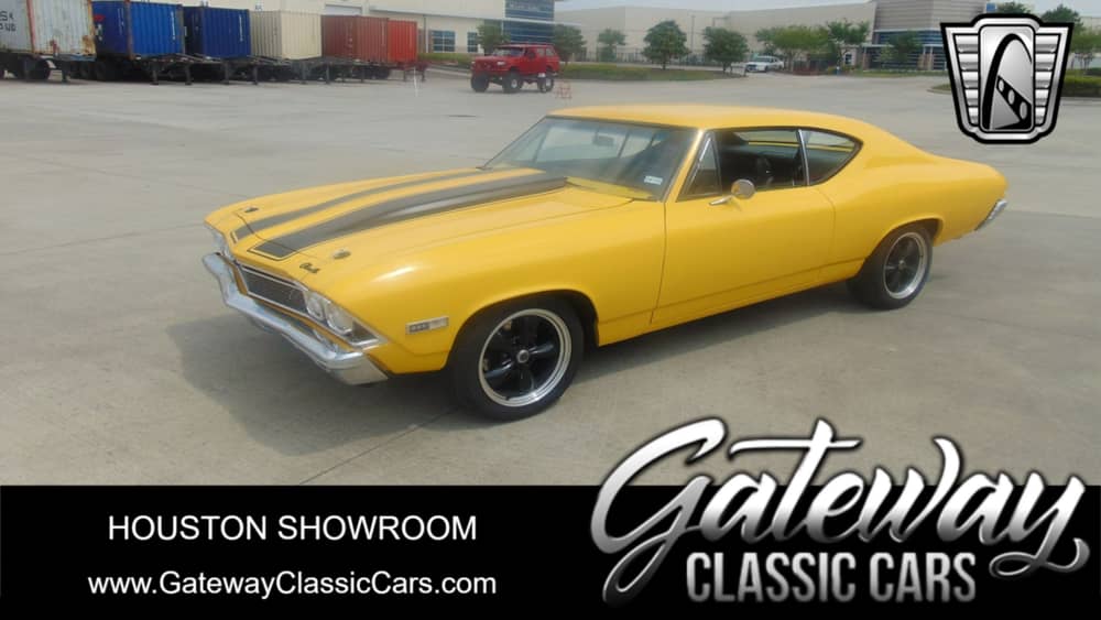 Gateway Classic Cars of Houston is proud to present this stunning 1968 Chevrolet Chevelle. When you think of muscle cars you think of big-block Chevelles. When you think of big-block Chevelles you think of raw power, aggressive exhaust notes and intimidating styling. For raw power, this Chevelle has a new 454 C.I.D big block fed by a 4-barrel Holley carb. This hearty engine's power is fed through a 4-speed automatic to a Chevy 12 bolt Posi rear end. All it takes is a blip of the throttle to light the tires up! For aggressive exhaust notes, this Chevelle features stainless steel long tube headers flowing into 3-inch exhaust pipes. Rev this bad boy up in the driveway and your neighbors will love you! For intimidating styling, the Chevelle features yellow paint with the classic Chevrolet racing stripes running down the hood and the trunk. Shaved door handles with electric poppers give the side of the car a super clean look and 17-inch American Racing black mag wheels show this muscle car means business. The interior is finished in a period-correct style with black vinyl bucket seats and a console shifter. The gauges are all digital so you can operate this beast with precision. Further performance upgrades on the car include UMI performance sway bars, drilled front brake rotors and an aluminum radiator with dual electric fans. If you're looking for a car that screams pinnacle 60s muscle and won't let you forget it, this is the one. Options on this beauty include air conditioning (not blowing cold), power brakes, power steering, power locks, power front windows, tilt wheel, keyless entry, seat belts, vinyl interior, and radial tires.