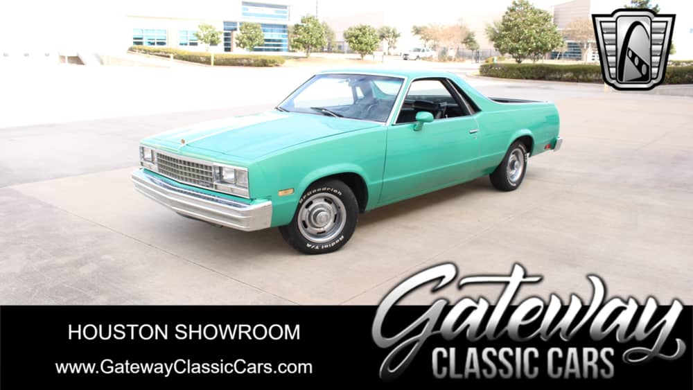Gateway Classic Cars Houston Showroom is pleased to offer this classy light green metallic 1983 GMC Caballero. Many, but not all, have likely forgotten that GMC had their own version of the Chevy El Camino: originally brought to market as the "Sprint" in 1971, GMC rebadged the Sprint as the Caballero for the 1978 model year, and it remained in production until 1987. This Caballero is powered by a 350 CID V8; which, combined with its 3-speed automatic transmission, will zip you down the road with ease, especially since the 350 has been topped with an Edelbrock 4BBL carb and aluminum intake. The little Ute also features a nice spray-in bed liner, which makes for a nice work vehicle if it's ever needed to haul stuff that would damage a regular painted bed. Inside, you'll notice the Dakota Digital "Ana/Digi" electronic analog dash, which is a nice upgrade from the original GM gauge cluster; along with fresh black synthetic leather seating, black carpeting, and the AM/FM/CD head unit. The tunes are sent from the deck to the speakers, which include two 8-inch subwoofers, so you'll not be straining to hear your jams, even with the windows down at interstate speeds. However, with the cold A/C, you'll probably not be doing that very often. The features and options on this Caballero include A/C, AM/FM/CD Radio, Power Brakes, Power Steering, Radial Tires, Rally Wheels, Seatbelts, and Vinyl Interior. Don't wait too long to call or email our Houston showroom - El Caminos and Caballeros are hot right now - don't miss out!