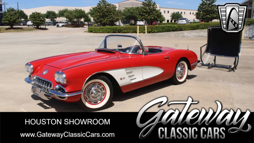 Gateway Classic Cars Houston is pleased to offer this 1960 Chevrolet Corvette for sale. It's bathed in a stunning red exterior color that nicely complements its classic black vinyl interior. This vehicle maintains its original charm while offering modern conveniences. Under the hood, this Corvette boasts a robust 350 CID V8 engine, paired with a 4-speed manual transmission, promising a dynamic and responsive drive that Corvettes are renowned for. The engine offers ample power, making driving this classic Corvette an exhilarating experience that any car enthusiast would crave. This Corvette comes equipped with an AM/FM/CD radio, allowing you to tune into your favorite station as you cruise down the road, or pop in your favorite CD to let you play your treasured collection, combining the magic of yesteryears with modern functionality. Safety is important, and this Chevrolet Corvette doesn't compromise in this respect. It comes with fitted seatbelts to ensure you and your passenger's safety during any ride. This vintage jewel sports traditional hub caps that properly accent its elegant and timeless design. The radial tires provide much better grip than the original bias ply tires ever could, ensuring a smooth and comfortable ride on various road conditions. This "Little Red" 1960 Chevrolet Corvette offers a combination of classic charm with its red color and sleek black interior, coupled with the timeless joy of driving a manual transmission car. Don't miss your chance to own this piece of automotive history that blends sophisticated style, robust performance, and essential modern features in one iconic package.