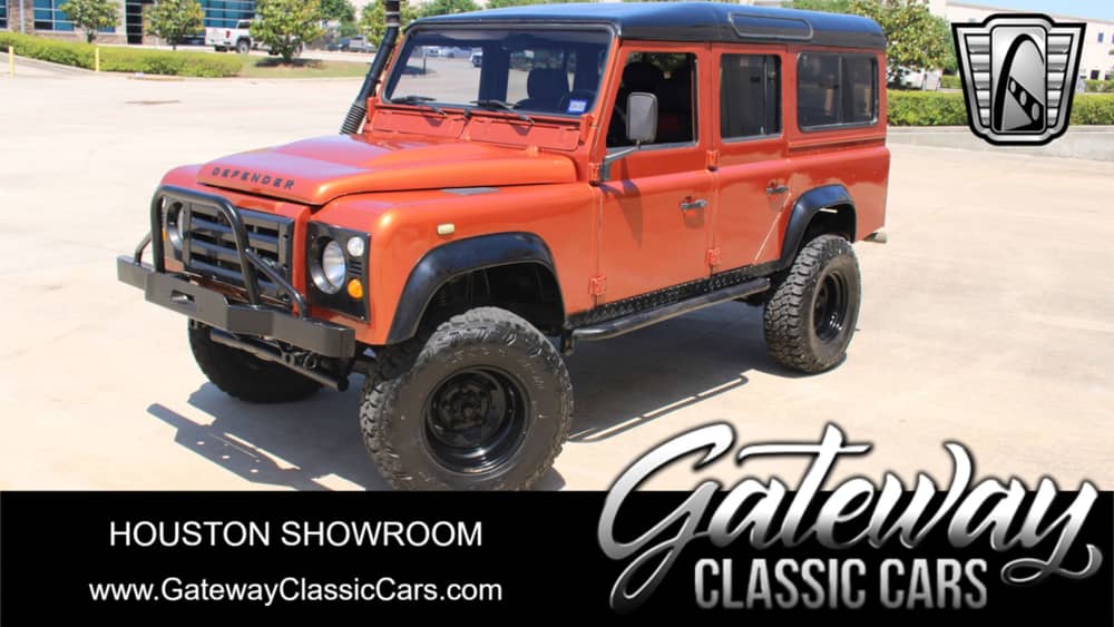 Gateway Classic Cars Houston Showroom is pleased to offer this 1993 Land Rover Defender for sale. Step into the world of luxury and adventure with its nice blend of style, power, and comfort. Showcasing an eye-catching orange metallic exterior, this beast stands out from the crowd. The black interior, complete with custom diamond-stitched synthetic leather seating, adds a touch of luxury to the rugged charm of this iconic vehicle, and its new headliner adds to the overall ambience. Under the hood, the 1993 Land Rover Defender houses a power-packed 300 TDI 4-cylinder turbo diesel engine that provides plenty of torque for those wilderness adventures. The 5-Speed manual transmission gives you a great balance of control and ease, ensuring a smooth and engaging driving experience. Enjoy the convenience of power front windows, power brakes, and power steering, all designed to make your journey comfortable and stress-free. With its robust LT285/75R16 off-road radial tires, the Defender is well-equipped to tackle any terrain with ease, making it an ideal chariot for adventure seekers. The built-in Dual-DIN touchscreen AM/FM/Satellite-capable radio with Bluetooth offers in-car entertainment and connectivity like never before. Whether you want to catch up on your favorite tunes or need directions to your next destination, this system has you covered. Safety is a priority, and so this machine comes with seatbelts to ensure you and your passengers are always protected. The added feature of air conditioning ensures a comfortable and cool ride even on the hottest days. This 1993 Land Rover Defender is more than just a vehicle - it's a lifestyle. Offering a blend of power, luxury, and safety, it's built to take you places and make every journey memorable. Experience the thrill and grandeur of this vintage off-roading ride today!