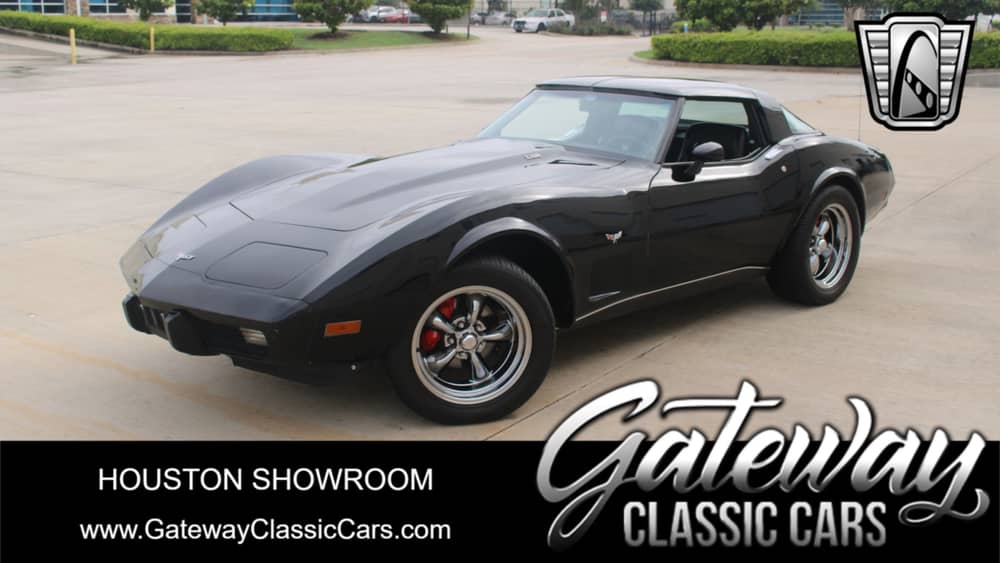Gateway Classic Cars Houston Showroom is pleased to offer this 1979 Chevrolet Corvette for sale. This bad boy is reportedly on just its second owner, who has had it for 43 years. It's wearing its original paint, and features its original interior, original glass, and comes with original new car papers. This iconic vehicle boasts a sleek black exterior and a black interior, creating a timeless aesthetic that is sure to turn heads wherever you go. Under the hood, you'll find a powerful 475 HP Summit Racing 383 Stroker V8 engine, which is topped by a Holley 750 CFM double pumper carb, high-rise aluminum intake, and aluminum heads. Coated Hooker headers feed the aluminized dual exhaust system, providing a muscular exhaust note. MSD ignition helps optimize spark, and an auxiliary electric fan enhances radiator cooling. The potent 383 is backed by a Richmond 5-speed manual transmission. A Centerforce clutch handles power transfer, and a Hurst shifter makes gear changes more precise. This combination ensures a thrilling driving experience, offering an impressive blend of power and control that is sure to satisfy any automotive enthusiast. Plus, its suspension has been completely rebuilt, so it carves corners better than ever. This Corvette is also equipped with a range of features designed to enhance your comfort and convenience. These include new Vintage Air air conditioning, power locks, power steering, and power windows. The vehicle also features a rear defogger and seatbelts for added safety. The 17-inch American Racing Torque Thrust aluminum wheels add a touch of modern style to this classic vehicle, while the radial tires ensure a smooth and comfortable ride. The car also features 4-wheel power disc brakes with Wilwood master cylinder, Hydratech booster, 6-piston Wilwood front calipers, and 4-piston rears, providing you with the stopping power you need to handle this powerful machine. Inside, you'll find vinyl trimmed seats with leather seating surfaces, offering a great blend of comfort and style. The car also features a tilt steering wheel for added convenience, and T-tops for those sunny days when you want to feel the wind in your hair. For your entertainment, the car is equipped with an AM/FM radio, allowing you to enjoy your favorite tunes while you cruise down the open road. This 1979 Chevrolet Corvette offers a unique blend of classic style, powerful performance, and modern convenience. Whether you're a collector of classic cars or simply someone who appreciates the timeless appeal of American muscle, this Corvette is sure to impress.