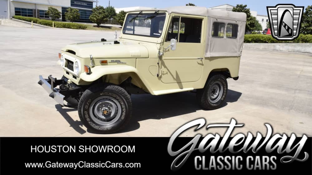 Gateway Classic Cars Houston Showroom is proud to offer this restored 1970 Toyota Land Cruiser FJ40 for sale. These FJ40'S are classic offroad vehicles that embody both rugged durability and vintage charm. This iconic model boasts a striking beige exterior, a color that nicely complements the Land Cruiser's robust and adventurous spirit. The gray interior offers a subtle yet sophisticated contrast, creating an inviting cabin space that harmonizes with the vehicle's overall aesthetic.