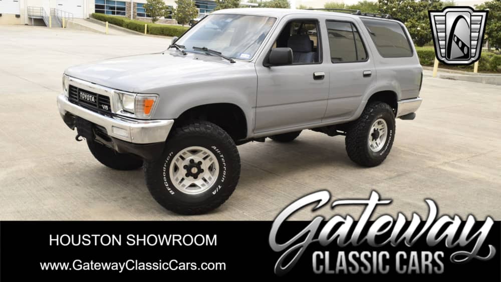 Gateway Classic Cars Houston Showroom is pleased to offer this vintage 1991 Toyota 4Runner, a classic SUV that combines rugged capability with practical comfort. Sporting a striking gray exterior, this vehicle exudes timeless appeal and robust design. Under the hood, it is powered by a reliable 3 Liter V6 engine paired with an automatic transmission, ensuring a smooth and confident driving experience whether you're navigating city streets or venturing off the beaten path.