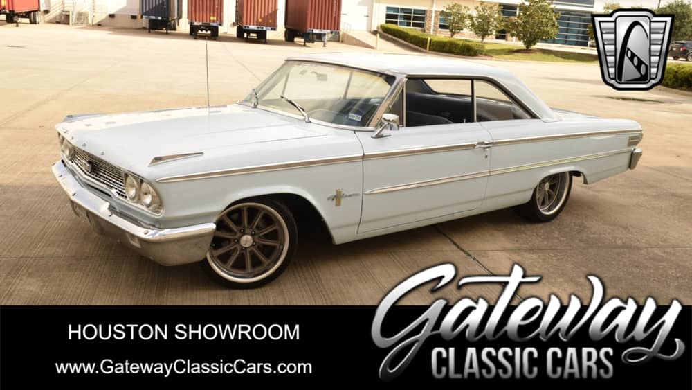 Gateway Classic Cars Houston Showroom is proud to present this 1963 Ford Galaxie 500. Being powered by a ever reliable 289 CID engine, these classic V8 engines are great for those Sunday cruises. Take the worries of flooding out the engine, thanks to the Fitech Electronic fuel injection fuel pump. This beauty is coated in a baby blue paint job and is paired with a matching cloth interior that has been recently updated.