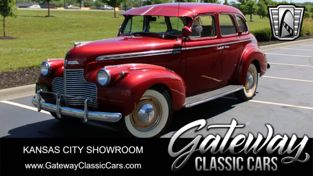 Introducing a classic piece of automotive history, the 1940 Chevrolet Special / Deluxe, a vehicle that embodies the elegance and craftsmanship of a bygone era. This model is presented in a striking red exterior color, a hue that captures attention and admiration wherever it goes. The vibrant exterior is complemented by a tan cloth interior, offering a warm and inviting atmosphere for both driver and passengers. The combination of these colors creates a timeless aesthetic that is both bold and sophisticated.
