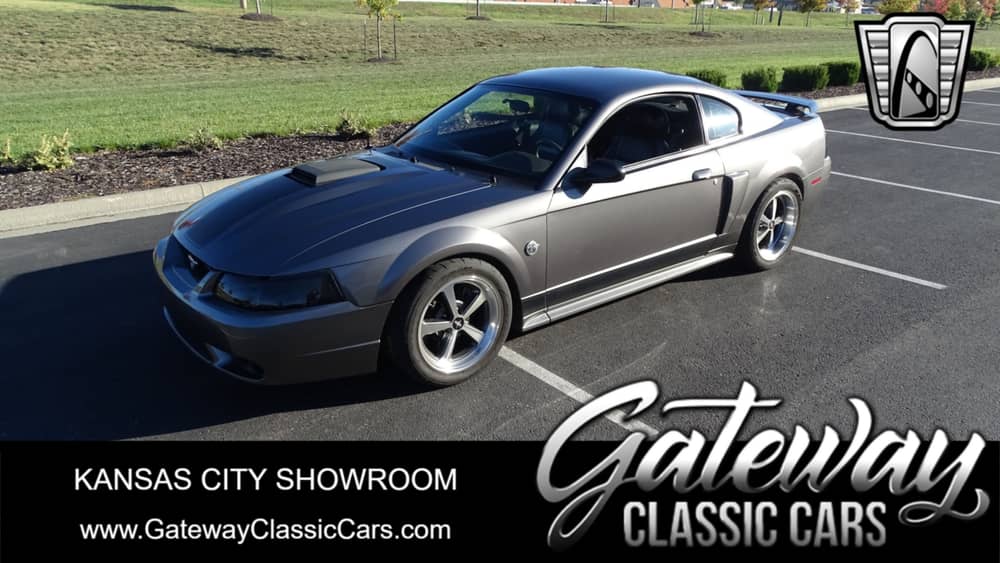Introducing the 2004 Ford Mustang Mach 1, a classic American muscle car that combines power, performance, and style. This vehicle is finished in a sleek gray exterior that complements its luxurious gray leather interior, creating a harmonious blend of sophistication and sportiness.