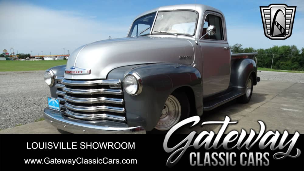 Gateway Classic Cars of Louisville is proud to present this 1952 Chevrolet 3100 Pickup! The first major revamp since the war the advanced design series was billed as a bigger better and sleeker design than the AK series. This would be the first trucks to have any type of comfort in mind. One thing is for certain and that is this truck is not your grand dad's old farm truck. Here we have a '52 model. The two-tone silver and gray paint looks very sharp! Sherwin Williams Base Coat/Clear Coat. Owner has the paint codes. It has a raked looking going for it that gives a very solid stance. The gray leather and cloth interior looks sharp, goes well with the exterior tones and is in good order. Under the hood is a 350ci V8 mated to a turbo 350 3-speed automatic transmission. The truck runs, drives, and shifts out well. The restoration appears to have been done around '00-'01. The build is extensive, here are some highlights. The bed is from Mac Industry of St. Louis. Truck has painless wiring, Edelbrock 4bbl Carb, Sanders Headers, Vintage Heat/Air, Electric Fan, Walker Surefit Radiator/AC Combo, Bourge Steering Knuckles & Shaft, Fatman Independent Front End, '77 Camaro Rear End and brake shoes, front brakes from 80s Monte Carlo and so much more. Owner is providing a binder with build details (hand written), receipts and diagrams and more. Current owner has had her for over 54 years and acquired a private owner believed to be the original owner. The title is clean and clear and ready to be transferred into your name now! Don't miss your chance on this well built truck that has already won several trophies. Options on this truck include: A/C, Power Steering, Leather/Cloth Interior, Tilt Wheel, AM/FM Radio, Seat Belts, Aluminum Wheels, and Radial Tires. This 1952 Chevrolet 3100 Pickup is offered by our Louisville Showroom and can be seen in greater detail including 100+ HD pictures and an HD video at www.GatewayClassicCars.com. For additional information please call our knowledgeable staff at (812) 294-1555 or email us at