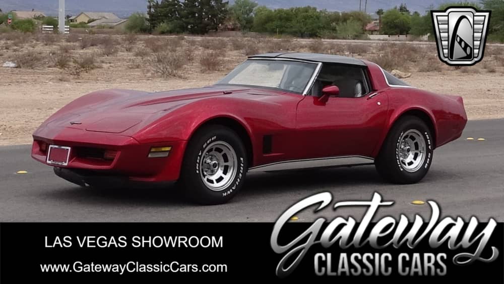 Gateway Classic Cars of Las Vegas is proud to present this 1981 Chevrolet Corvette. This smoking hot C3 corvette is still in its prime and is loaded with options for this year. Power seats, power windows, power locks, T-tops, and tilt/telescopic wheel, are a few of the highlights of the car. The dark red metallic color paint shows well in the sunlight and highlights the curves of the car nicely and is complimented with a silver gray interior. Under the hood is a tried and true Chevrolet 350 small block and a 4 speed manual transmission. These C3 corvettes are a great bang for buck if you are looking to get into a reliable classic. They look, sound, and drive great and when the T-tops are removed, the driving experience is that much better. Don’t let this one slip away!
