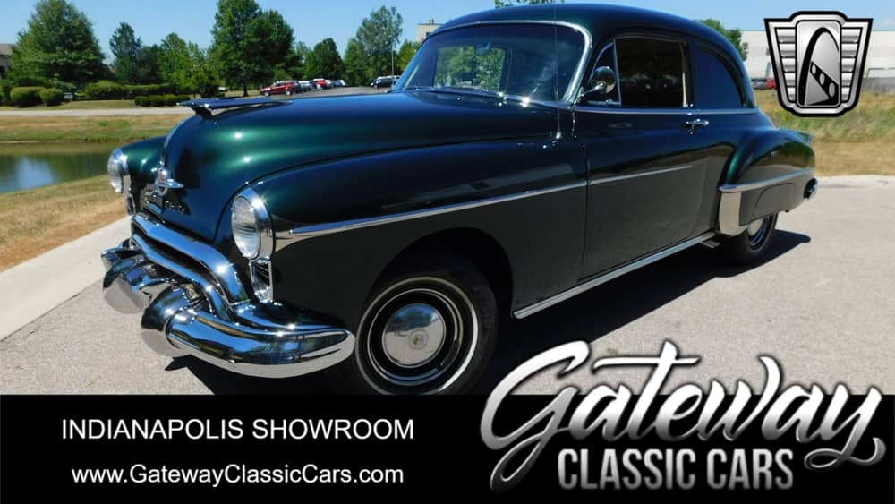 Gateway Classic Cars is proud to present this stunning 1950 Oldsmobile 2-door Sedan Futurmatic! Re-done from top to bottom with less than 2,500 miles on it since the restoration. Painted in a beautiful "New Dark Green Metallic" with all new interior carrying the "Olds Rocket" badging. Under the hood you'll find the 383 Stroker by "Blue Point" carrying 445 HP mated to a new 700 R4 automatic transmission, with a Trans Locar Shifter. Still dawning original 15 inch wheels with new Hancook Whitewall tires. Rest assured that all the chrome and stainless has been polished to give this baby the shine and help it stand out from the crowd! All new everything all around with updated brakes and and wiring. Enjoy the tunes with the updated AM/FM radio and cruise in style with plenty of power from the latest 12V system. This one is ready to go, whether it's car show day, or a trip down old Route 66!