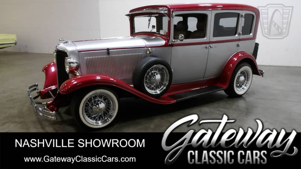 Gateway classic cars of Nashville is proud to offer for sale this 1931 Chrysler sedan. Two tone silver and red this 1931 Chrysler stands out in a crowd to be sure but take a closer look. Leather interior, power windows, and 4-wheel disc brakes hiding behind the real wire rims, not sure this was standard in 1931. Closer inspection shows a 5.7 liter fuel injected hemi under the hood! This car was built to drive and have fun in. There is room for at least 5 adults to pile in and go where the wind takes you. This classic is ready to go to the show, parade, local drive in or grocery store, heck even soccer practice! With old school looks and new tech like a AM/FM CD player and air conditioning, Power windows and big bright bucket lights on brass supports this car is just Kool. This car runs and drives like a modern car, has good road manners and started with a simple twist of the key but will cause smiles, waves and thumbs up from almost every bland, so-so, yawn, boring car you pass. Now for the disclaimer. This Chrysler may cause, giddiness, perma- smile, euphoria, and unnecessary trips to the store. Options for this 1931 Chrysler include: Air conditioning, AM/FM CD player, 2 spare tires, Power steering and brakes, Power seat and windows, Tilt steering wheel, seat belts, Leather interior, Radial tires on wire rims.