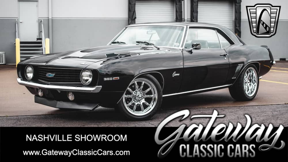 Gateway Classic Cars of Nashville Tennessee is proud to digitally present this showstopping 1969 Chevrolet Camaro. This Camaro for sale is not average by any means whatsoever! From bumper to bumper this car has been restored, repainted, updated or modified. Powering this 1969 Chevrolet Camaro for sale is a General Motors 5.7L 350 Cubic Inch V8 that has almost every chrome goodie that could be added under the hood. Backing this power-plant is a General Motors 700-R4 4-spd automatic, what a great paring and who wants to separate such a beautiful couple? This is just the tip of this build, from panel fitment that looks like the auto-gods aligned them to the deep black gloss paint that pairs great with the aftermarket performance wheels as they have the same sinister gloss shine. When selecting the wheels this offset was put into place as they were ordered to match the suspension. There is not one part on this car that you can look at and think “well that’s original” because it won’t happen. You might be able to say that a part came on the it from the factory but this Camaro for sale is not a beginner build, the amount of time and energy that was put into the car is top-notch. From how this car shifts between gears to the thumpy exhaust sound you know that you are rolling on pure American Muscle. Options and features in and on this 1969 Chevrolet Camaro include: Power Steering, Horsepower, Seat belts, Vinyl seating, tons of fun and Radial tires wrapped around after market aluminum wheels. Do not be fooled by imposter Camaros as this is the one that is begging to be in your Carage.