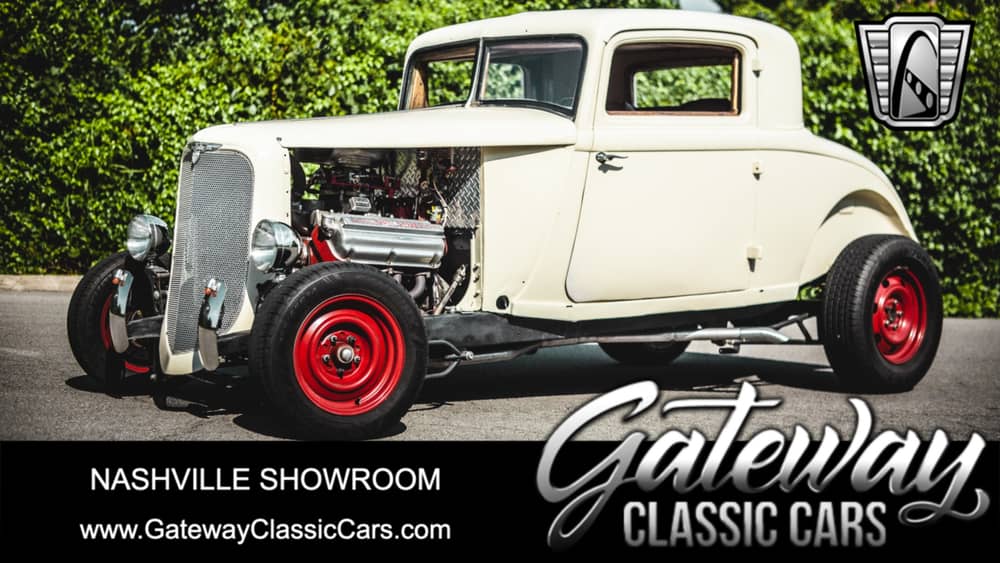 Gateway classic cars of Nashville digitally presents to you this 1933 Chrysler Coupe. Remember Mom in the kitchen never measuring anything, just some of this, a little of that and a smidge of the other. By the way, how much is a smidge? And when it hit the table, it tasted great. This 1933 Chrysler is much like that, except, don't taste it. This epic car started as a 1933 Chrysler coupe, painted a light cream that I believe is a primer this sleek body is ready to drive or, paint any color you like. Powering this beauty is a Desoto Fire dome 361 cubic inch Hemi engine that has the right go fast goodies inside and bolted to the engine itself. The builder tells me the Desoto Fire dome has a solid lift cam that as you can tell by the video has a very nice thump. The intake has a slight high rise to it and is topped with a Quick fuel double pumper 4-barrel carburetor and the firedome just begs for more. The transmission of choice 727 torque flight that has TCI marking on it. A Ford 9-inch rear axle was used and attached to the frame with ladder bars to hold it in place. Hair pins for the old school front suspension with solid axle and 4 wheel power disc brakes to provide enough whoa for all this go. If you are looking for a shinny coat of paint , A/C , leather interior and an engine that is laboring to run with a cam with a power range of 6,500 to 10,000 then this is not your car. On the other hand, if you are looking for a car that will reward you in spades for a little work and has so many unique parts with a smidge of Hemi engine then stop looking and start dialing, this one will not last long. Options for this 1933 Chrysler include: Power brakes, tilt steering wheel and vinyl interior. Mom would be proud of this recipe.