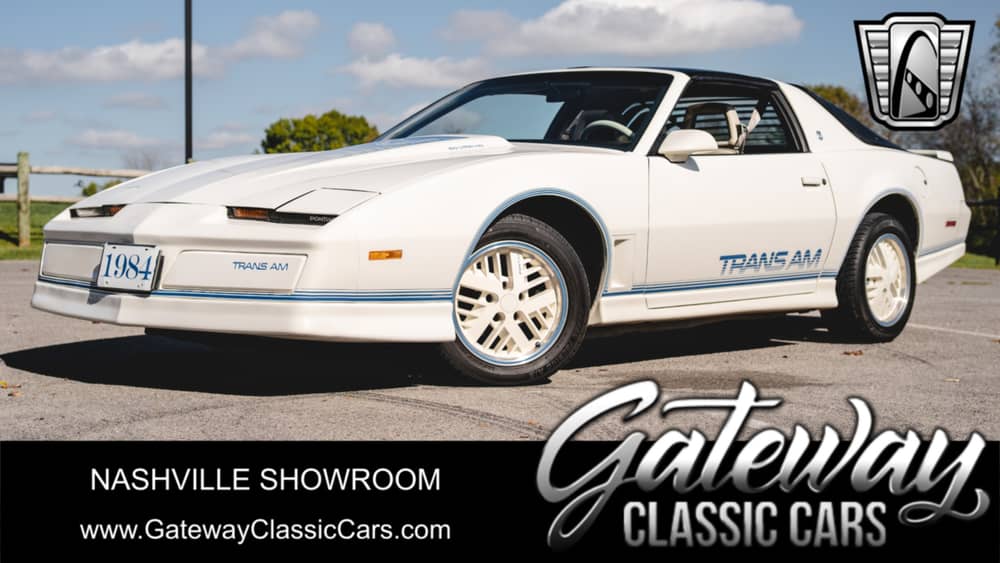 Step back in time and experience the quintessential essence of the 1980s with this remarkable 1984 Pontiac Firebird Trans Am 15th Anniversary edition. This iconic vehicle is a celebration of style and performance, boasting an unusual yet striking color combination that is sure to turn heads. The white with Pontiac blue accents exterior is a nod to classic automotive design, while the interior offers a unique blend of gray and white accented cloth that exudes both comfort and retro charm.