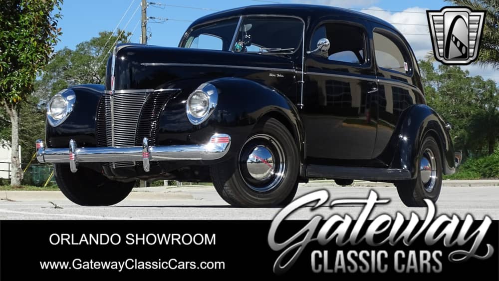 Gateway Classic Cars of Orlando Florida is proud to offer this classy 1940 Ford Deluxe for sale. In the early days of the Hotrod world the go to engine of choice was Ford's flathead V8. Anybody who was somebody had a flathead and that somebody can be you! This 1940 Ford Deluxe is dressed in beautiful Black paint that is complimented by a sharp green cloth interior. Under the hood of this classic Ford is a 1950 Ford 239 Flathead V8. A 3-speed manual transmission is used to connect all that power to the rear wheels. Imagine how this old Ford can get up and go! A keen gearhead will appreciate the all steel body. If you're looking for a sharp looking example of a muscle car from yesteryear this is the one you want to own! Options include rack and pinion steering, disk brakes on the front, AM FM radio, and much more. This is a great example of a 1940 Ford and shows what happens when you put a lot of care and effort into a classic car. Don't wait long this classic ride will be gone fast.