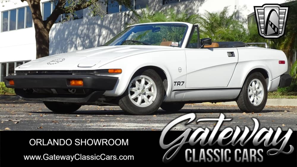 Gateway Classic Cars of Orlando is proud to present this 1980 Triumph TR7 Convertible. After decades of producing some of the most beloved sportscars Triumph embarked on a plan to build a modern sportscar. The TR7 delivered with style you'd expect from Italy. This 80 TR7 convertible is looking bright and fresh in it's white paint job draped over it's exotic body lines. As you walk around the vehicle you'll notice nice details like pop up headlamps, vented hood and classy rear luggage rack. Take a seat inside and you'll find a stylish interior with tan vinyl bucket seats and some snazzy plaid on the door panels. Under the hood is a 2.0 Liter inline 4 cylinder and is paired with a 5 speed manual transmission. Imagine how this car can get up and go! According to the owner this vehicle has been in the same family since new. If you're looking for a well looked after example of a stylish British sportscar this is the one you want to own! Options include AM/FM radio, manual soft top, vinyl interior, seat belts, power brakes and alloy wheels wrapped in radial tires.