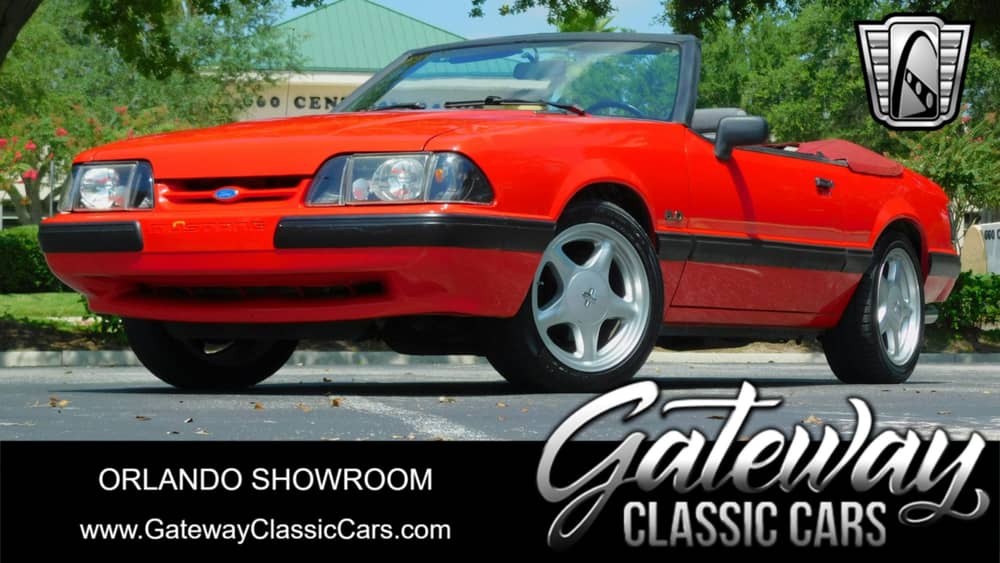 Introducing the 1991 Ford Mustang Convertible, a classic American muscle car that combines power, style, and comfort. This model is presented in a striking red exterior color that is sure to turn heads wherever you go.