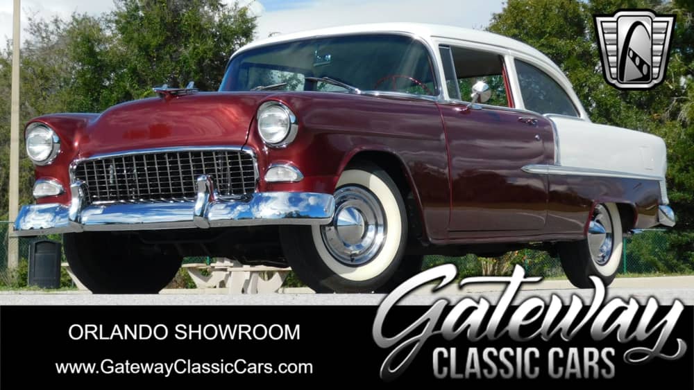 Gateway Classic Cars of Orlando invites you to step back in time with this classic 1955 Chevrolet 210. This iconic vehicle boasts a striking red and white exterior that complements its red and white vinyl interior. The color scheme is a nod to the era it was born in, and it's sure to turn heads wherever you go.