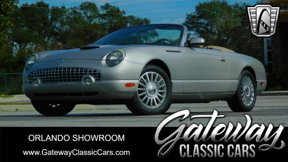 Introducing the 2004 Ford Thunderbird, a classic American icon that combines timeless style with modern convenience. This model is finished in a sleek silver exterior, which complements the luxurious beige leather interior.