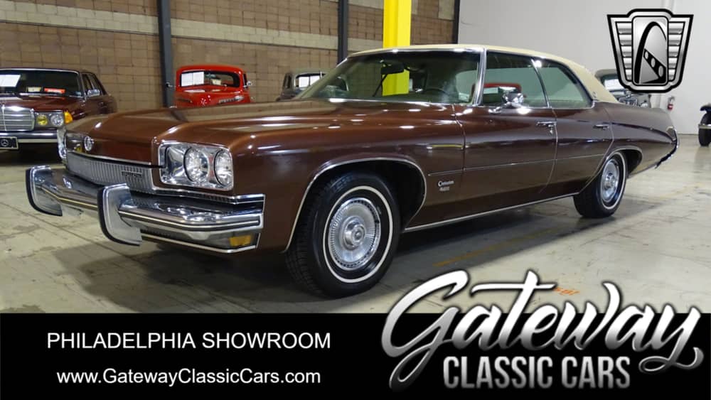 Gateway Classic Cars is proud to offer you this 1973 Buick Centurion for sale. The Centurion name was inspired by a Buick concept car, the name coming from that of an officer in the Roman Army. The car's emblem was not the traditional Buick tri-shield, but a side profile of a centurion. This Centurion is a 4 door sedan painted in Brown with Beige interior. Powered by a 455 CID V8 matted to an automatic transmission this Buick is the one everyone had to have when they wanted the biggest motor around. Current owner has had in his collection for the last 18 years and believes it to be a stock car. Option include AC, AM/FM Radio, Seatbelts, Tilt Steering, Anti-lock brakes, Power Windows, seats and steering and Power brakes.