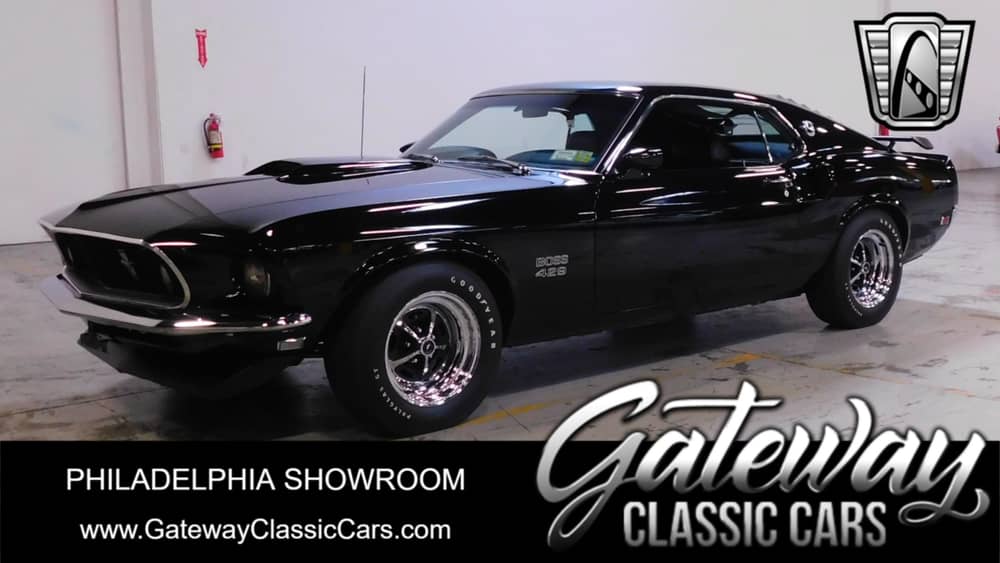 Gateway Classic Cars is happy to show off this 1969 Ford Mustang Fastback for sale. This Fastback has undergone a restoration and badged as a Boss 429. Painted in Black with Black interior and optioned with a cowl induction hood. Powered by a Precision Machined 351 Windsor V8 with a set of I-Beam connecting rods with ARP Hardened Rod bolts, High Performance Flat top Pistons with a single Valve relief, a Melling High Volume Oil Pump, new Timing Cover, and a Edelbrock Aluminum Performance Intake with a 600 CFM Edelbrock Carb. All mated to a 5 Speed Manual Transmission and backed by a Currie Rear end with Posi Traction. Options include Front and Rear Spoilers, Rear window Louvers, AM Radio, Power Brakes and Steering, Radial Tires and Rally Wheels.
