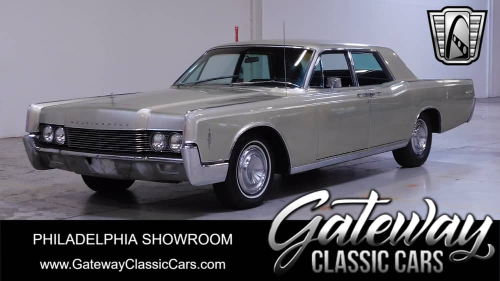 Gateway Classic Cars of Philadelphia is proud to digitally present this 1966 Lincoln Continental. This timeless beauty is dressed in a sophisticated tan exterior that complements its black leather interior, creating an elegant aesthetic that is sure to turn heads.