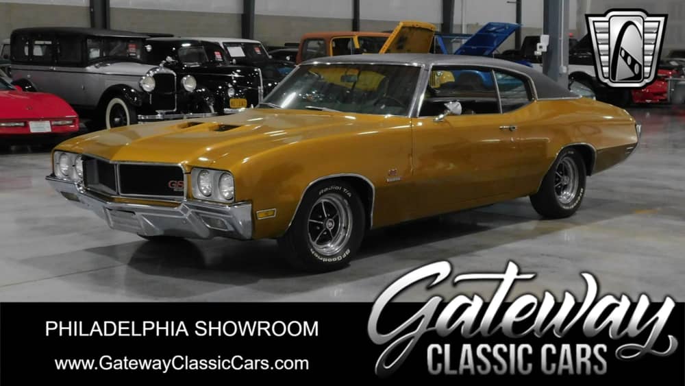 Gateway Classic Cars of Philadelphia presents a classic embodiment of American automotive innovation, the 1970 Buick Gran Sport. This vintage beauty is a stunning example of the muscle car era, boasting a captivating gold exterior that is sure to turn heads wherever you go. The sleek lines and iconic design elements are timeless, making this Gran Sport a must-have for any classic car enthusiast.