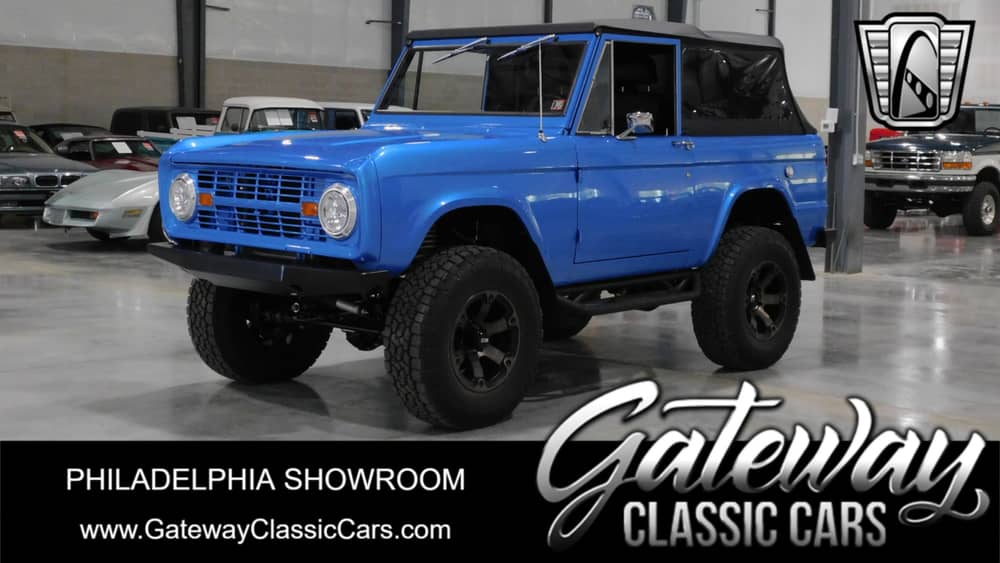 Gateway Classic Cars of Philadelphia presents a classic gem for vintage car enthusiasts: the 1970 Ford Bronco with a striking blue exterior and a sleek black leather interior. This Bronco is a must see because every square inch has been upgraded above anyone's standards. This iconic vehicle combines timeless design with modern comfort, making it a standout choice for those who appreciate both style and performance. Under the hood, you'll find a powerful V8 engine paired with a manual transmission, offering an engaging driving experience that true automotive aficionados will appreciate.