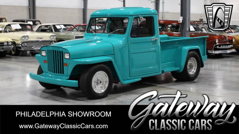 Gateway Classic Cars of Philadelphia proudly presents the 1947 Jeep Willys Pickup Pro Street. This iconic vehicle stands out with its striking turquoise exterior, a color that not only captures attention but also pays homage to the vibrant spirit of the late 1940s. Under the hood, this classic pickup is powered by a formidable 440 V8 engine, offering a robust performance that is complemented by the smooth operation of an automatic transmission. This combination provides an exhilarating driving experience that is both powerful and seamless.