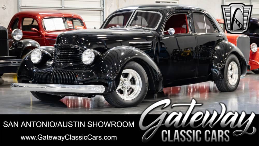 Gateway Classic Cars of San Antonio/Austin is very happy to offer this super rare 1941 Graham Hollywood! Introducing this 1941 Graham Hollywood, with only 281 units produced during 1941 due to the start of WWII, is a classic gem that nicely combines the vintage appeal with modern conveniences. This stunning vehicle features a sleek, DuPont Centauri black exterior that commands attention on the road, and then you step inside to discover a captivating red and black interior that not only offers comfort but also adds a touch of style and sophistication! Under the hood, this car is powered by a Summit Racing 350 CID V8 crate engine w/ a FiTech EFI that delivers remarkable power and performance. Paired with a 700R4 automatic transmission, the 1941 Graham Hollywood ensures smooth and effortless driving, making every journey a pleasurable experience. Despite its vintage appeal, this car comes with a host of modern features for your convenience. It is equipped with a Vintage Air A/C system to keep you cool during hot summer days. The American Racing aluminum wheels add a touch of elegance to this classic beauty, while the AM/FM radio and CD player provide a variety of entertainment options during your drive. Power steering ensures easy maneuvering, making driving this classic car a breeze. Power windows add a touch of modern convenience to this vintage vehicle, while seatbelts ensure your safety during every journey. The tilt steering wheel offers comfortable driving, allowing you to adjust the wheel according to your preference. And finally, the custom Lamar Stephens installed vinyl interior is not only stylish but also easy to clean and maintain, making it ideal for those who value both style and practicality. In summary, the 1941 Graham Hollywood offers a unique blend of vintage charm and modern convenience. It is a nice choice for those who appreciate rare classic cars but do not want to compromise on modern features or performance Step into the past and experience the future with the 1941 Graham Hollywood!
