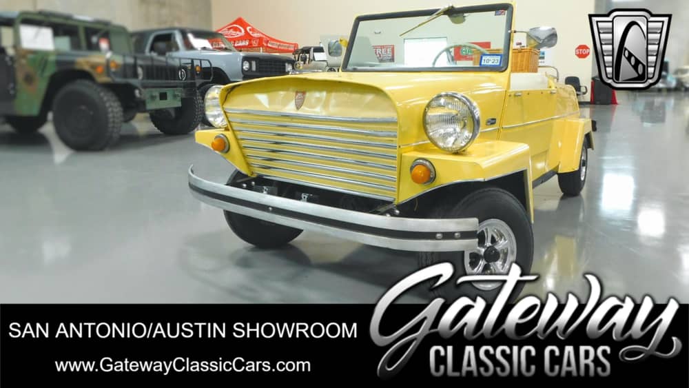 Gateway Classic Cars of San Antonio/Austin is happy to present probably the smallest car we've ever seen, this super fun 1967 King Midget Model III. For the uninitiated, the Midget was a product of the Midget Motors Corporation of Athens, Ohio, a postwar automaker that for a while was actually the sixth-largest in America! The Model III was sold fully assembled and was advertised in magazines like Popular Mechanics and Mechanix Illustrated. It was billed as both "World's Number One Fun Car" and "World's Most Exciting Small Car", and many people still believe it is! These people, and countless others, helped King Midget establish an important and significant niche in the annals of automobile history. The King Midget celebrated its 65th birthday in 2011, and among all automobiles ever manufactured throughout the world, King Midget holds one untouchable record... King Midget was the only small car continuously manufactured for nearly a quarter of a century; from 1946 until operations ceased in 1970. Under its tail finned bodywork was a rear-mounted, air-cooled, one-cylinder Kohler engine making 12 horsepower, a two-speed automatic transmission, fully independent suspension, and four-wheel hydraulic drum brakes. Owners could expect to average better than 50 mpg of use in daily-driving use, and the Model III could reach 50 mph. If you are wanting to be the hit of any parade or event in your area, or are looking for a street legal advertising piece that just makes people smile, then this 1967 King Midget III will be the absolute star of the show!
